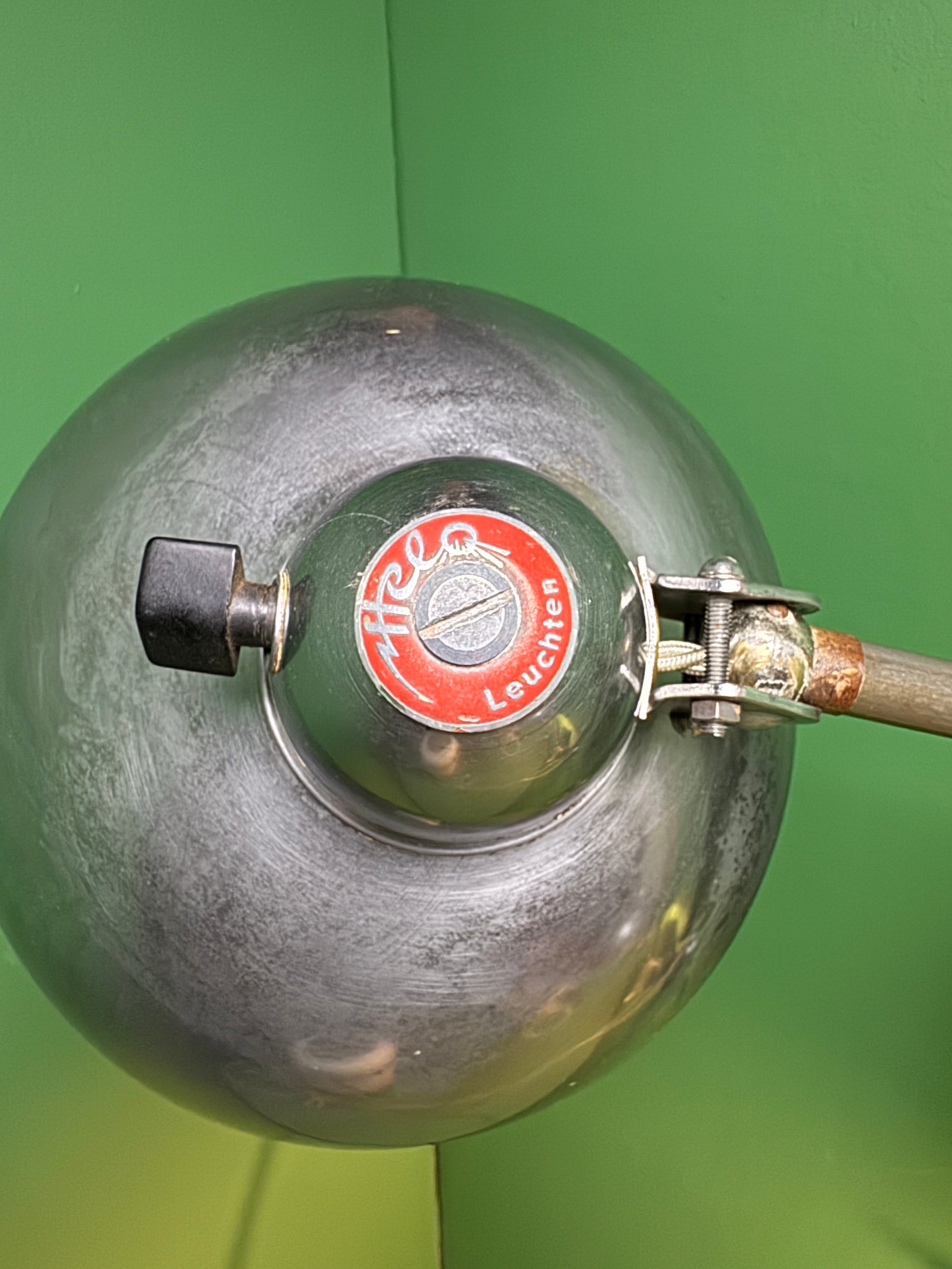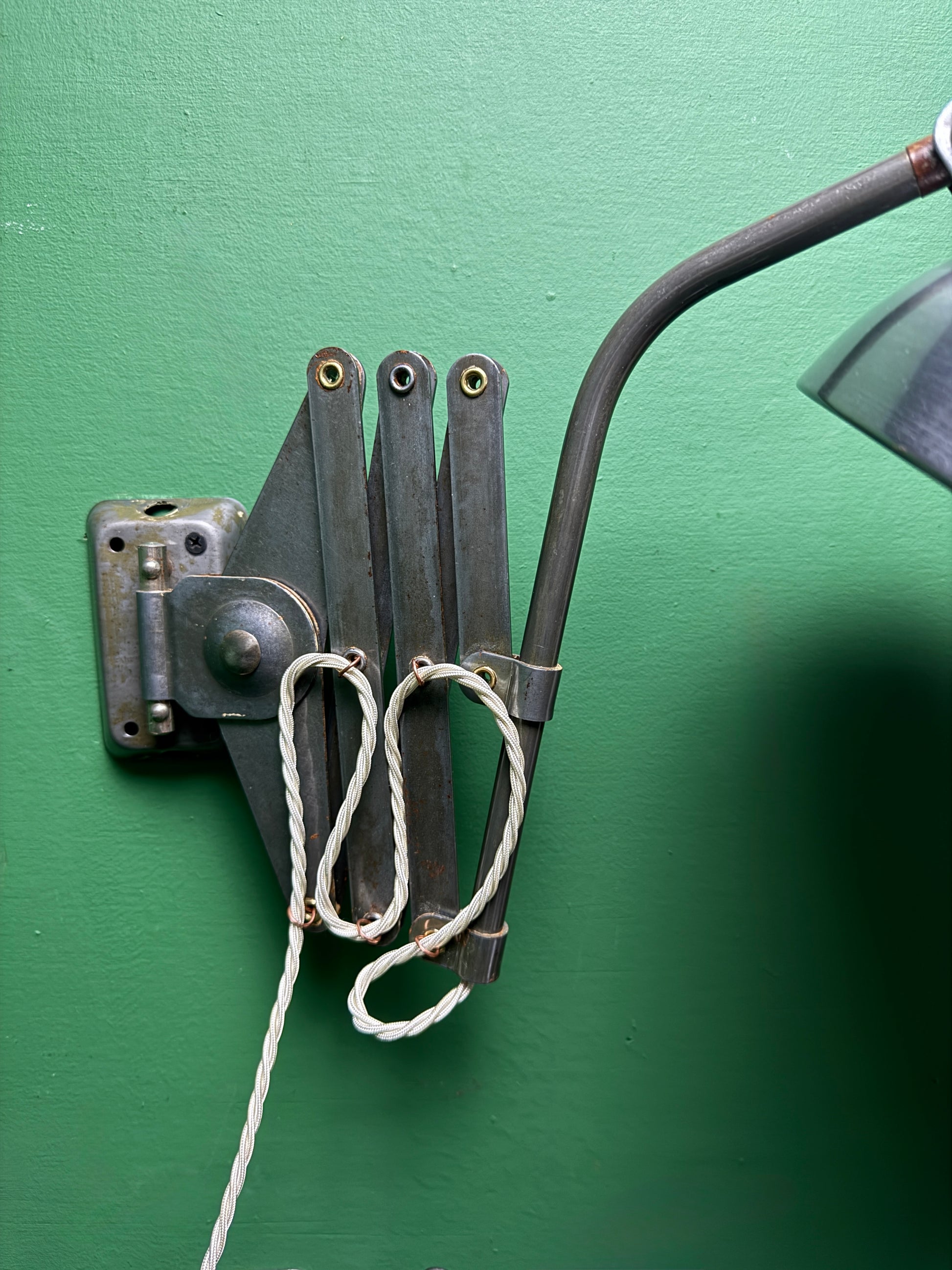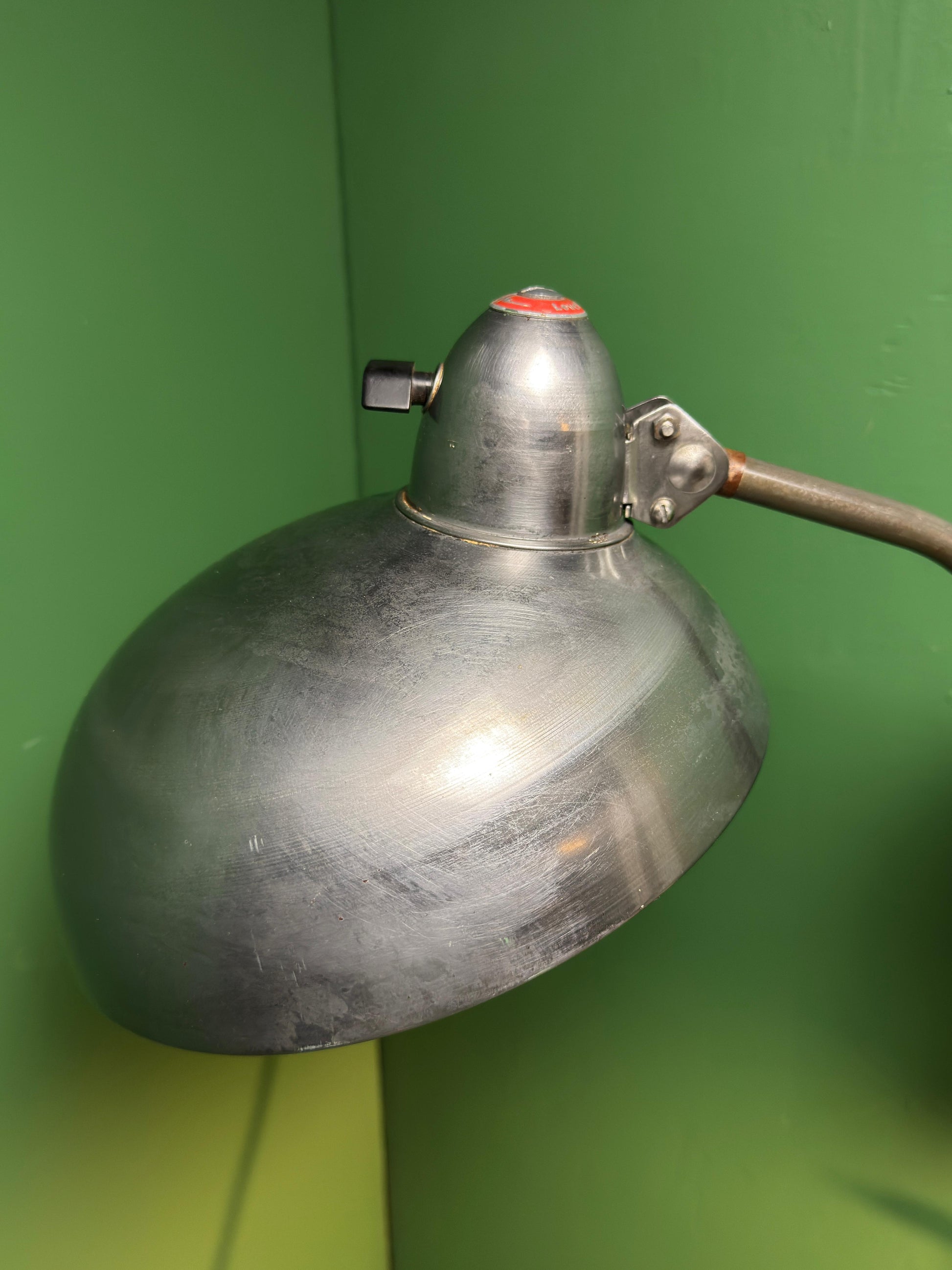 These lamps were fixed to walls over machinery or work stations & could easily be pulled into the desired position.
