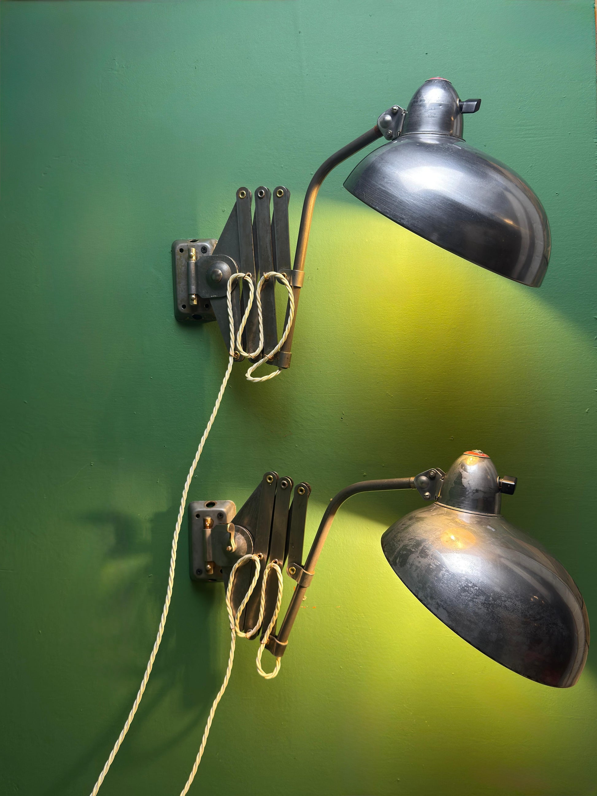 1950s industrial scissor lamps by renowned German lighting company Helo Leuchten.